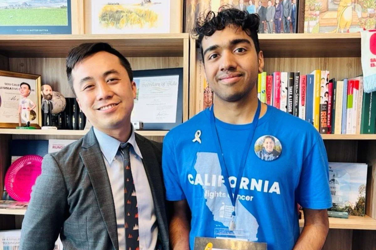 Pictured above is one of our members, Sahil Mehta, meeting with Assemblymember Alex Lee. Sahil was able to successfully pitch the idea for a bill that established a childhood cancer tax contribution fund, culminating in the introduction of AB 703 — a bill that successfully passed both the California Assembly & Senate!