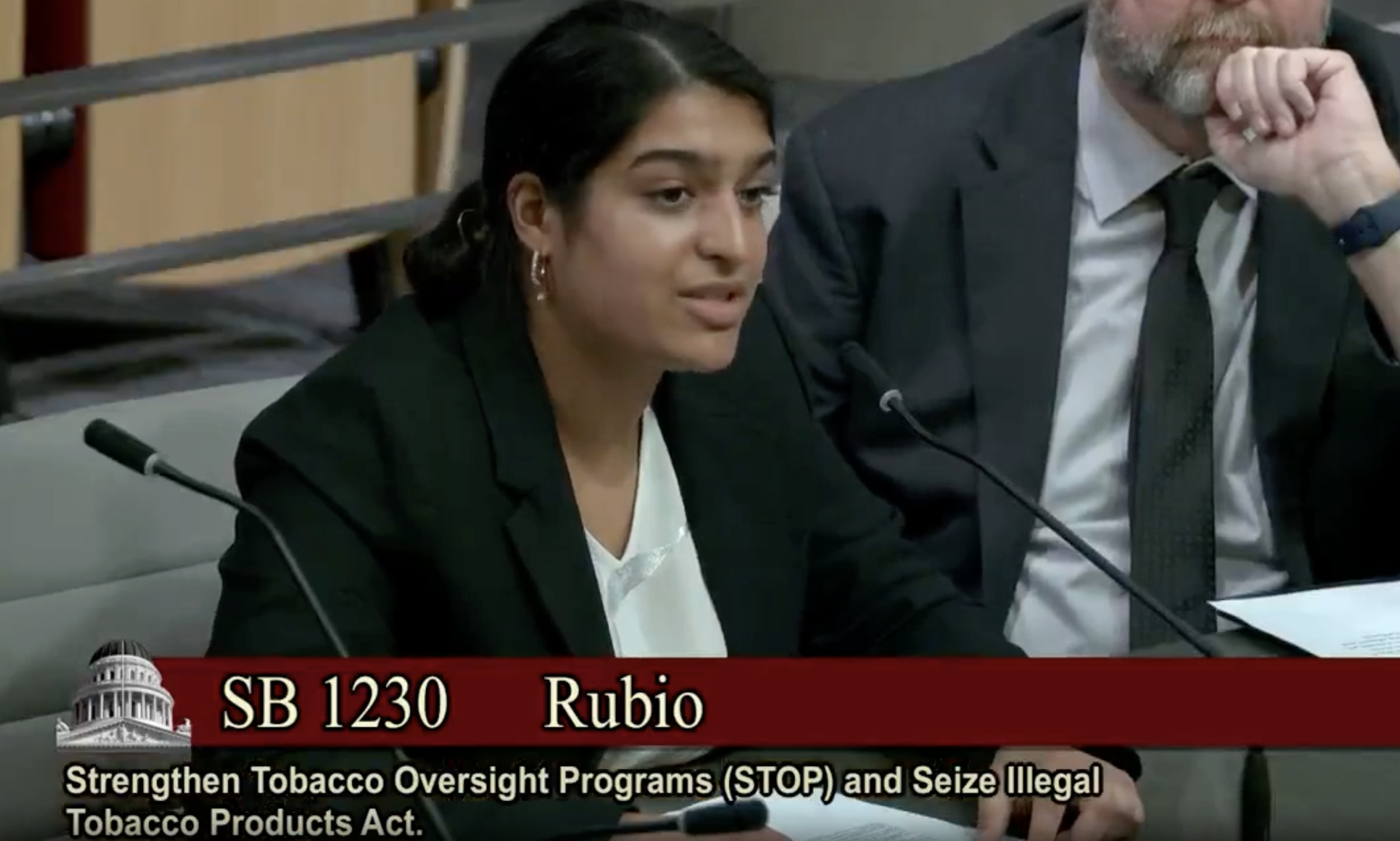 A select of our student advocacy leaders were chosen to provide testimony on bills related to cancer prevention & detection and tobacco cessation, including Sabrina Toor for AB 1230 (picture above) and Sim Sidhu for AB 573.